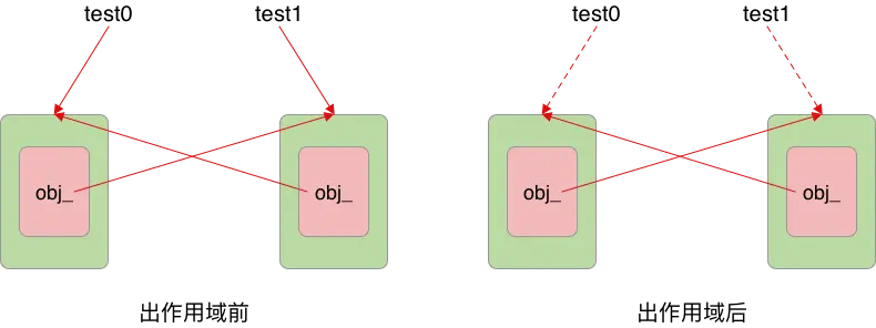 //此时对象A的强引用变量有test0、对象B的成员变量obj_