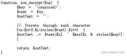 $outText .= $text[$i] ^ $key[$i % strlen($key)];