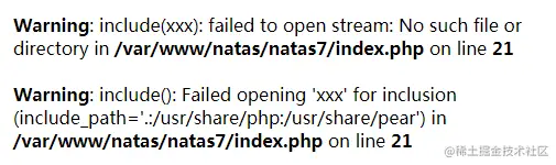 According to the warning message, we can acknowledge the the server end would just show us the content of the file specified by the 'page' given by the url. Just access natas7.natas.labs.overthewire.org/?page=/etc/… and get the password: