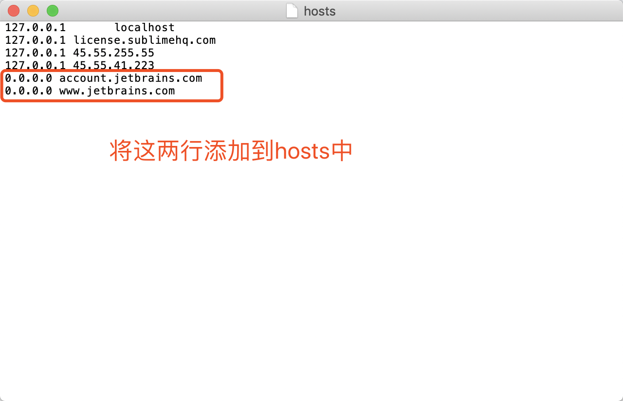 将0.0.0.0 account.jetbrains.com和0.0.0.0 www.jetbrains.com 添加到hosts文件最后,注意hosts文件无后缀,如果遇到无法修改或权限问题,可以采用覆盖的方法去替换hosts文件