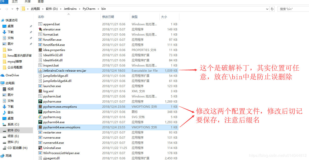 pycharm.exe.vmoptions和pycharm64.exe.vmoptions,以文本格式打开并同时在两个文件最后追加 -javaagent:D:\你pycharm的安装路径\bin\JetbrainsCrack-release-enc.jar,注意路径修改成你的pycharm安装路径,然后保存。