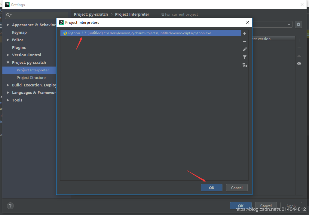 如果这里没有解释器,就点击右侧的+号,新建一个,选择好解释器之后等待一会,之前的`Configure Python interpreter`提示框就会消失