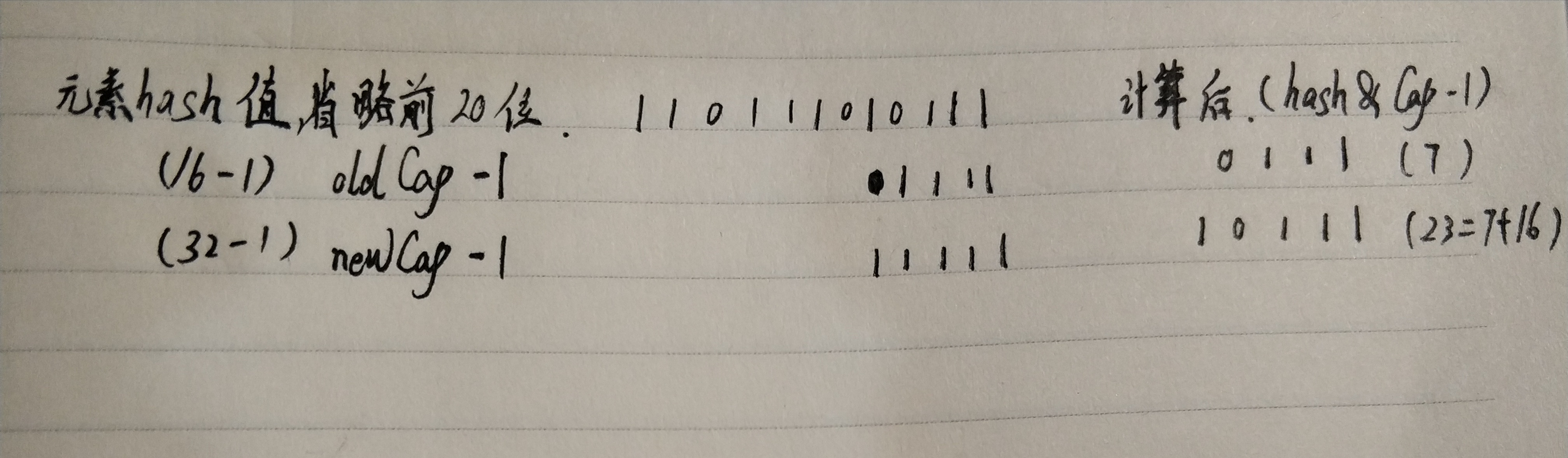 hash&(newTable.length-1)一定是和hash&(oldTable.length-1)+oldTable.length相等 - 因为table的长度一定是2的n次方,也就是oldCap 一定是2的n次方,也就是说 oldCap有且只有一位是1,而且这个位置在最高位;