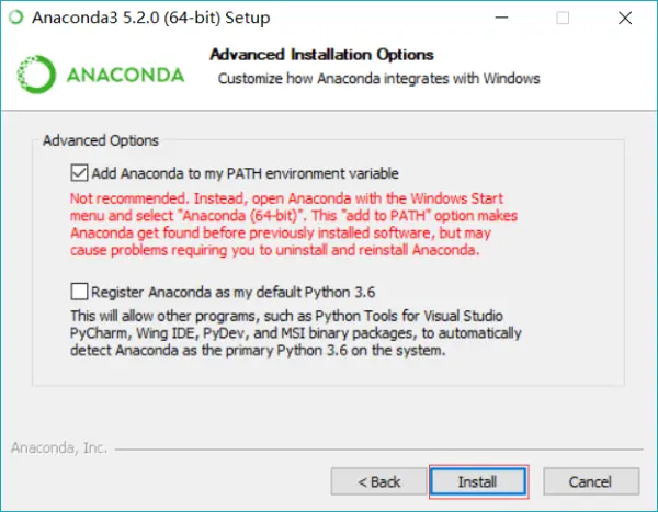 勾选 Add Anaconda to my PATH environment variable ,然后点击 install 安装即可
