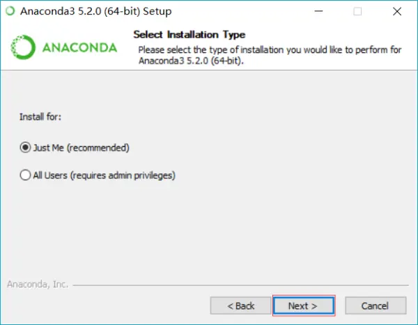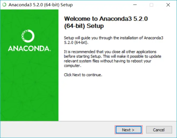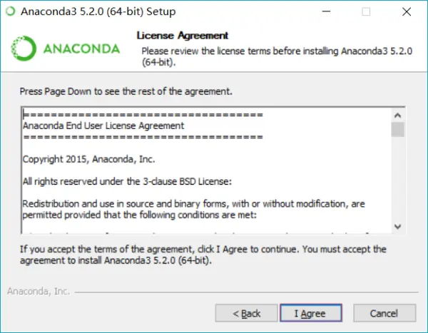 本文推荐下载Python3.6对应的版本,以笔者为例电脑环境为:Windows-64Bit,下载的对应版本为:Anaconda3-5.2.0-Windows-x86_64,下载完成后打开安装包如下图所示: