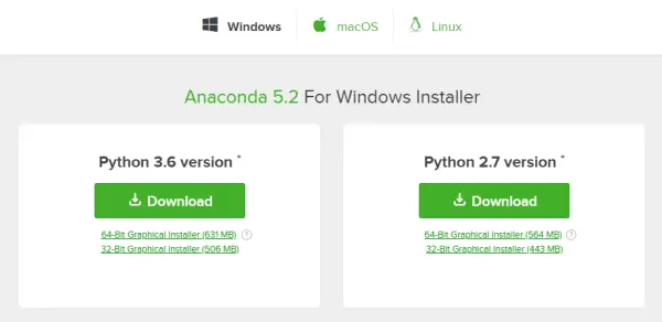 首先从Anaconda官网下载对应版本的Anaconda,如果下载速度过慢推荐使用国内的清华大学开源软件镜像站选择对应的Anaconda下载,Anaconda的官网下载页面如下图所示: