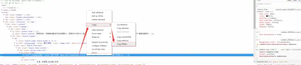 接着我们选择下面的元素,右键选择Copy-->xpath, 如下图所示: