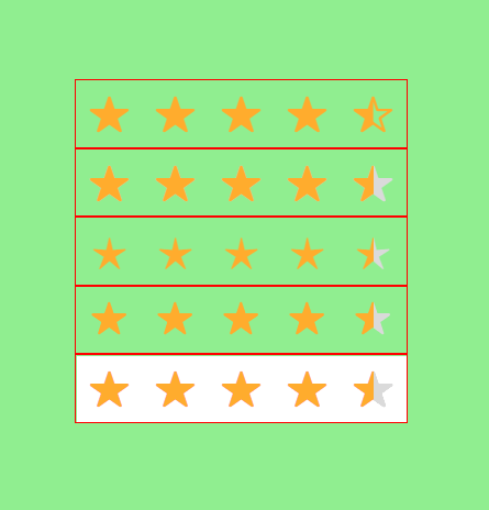 等我写完这段代码之后,我突然的赶紧似乎和我们想要实现的效果有那么一点不一样:最后那半颗星的颜色不同。