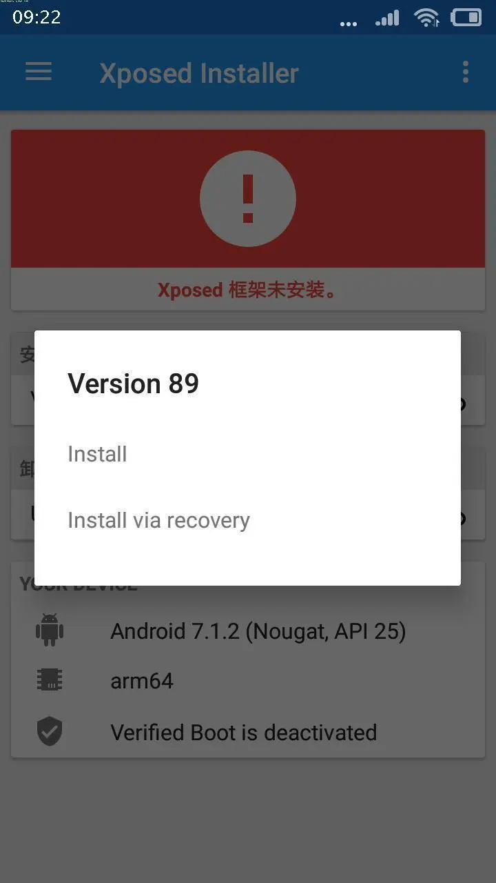 然后,点击“安装/更新”选择项,在下面弹出的对话框中,选择“Install”或者"Install via recovery",当然做这一步前提我们的红米7.0系统机器需要获得Rootsu管理权限,如果你的红米7.0系统机器没有Rootsu管理权限,那可以按照无Root版本的激活流程进行尝试。