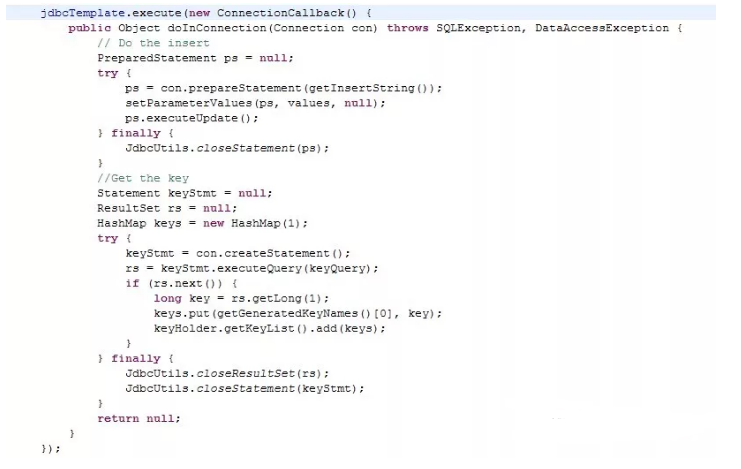 以下是一个具体的例子: JdbcTemplate中的execute方法