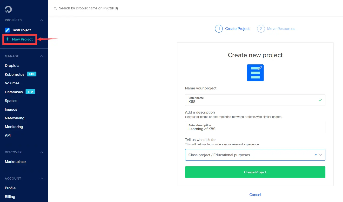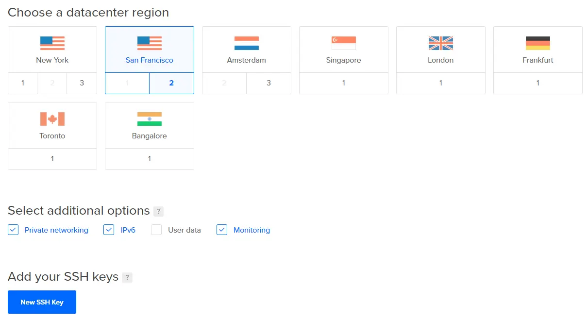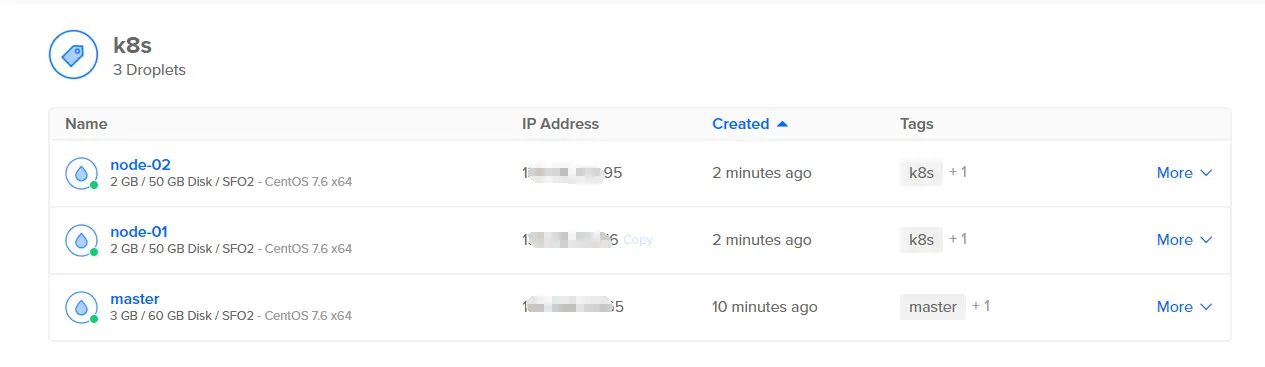 由于要求为手动搭建并且有不同的内存需求,这里分两次来创建Droplets