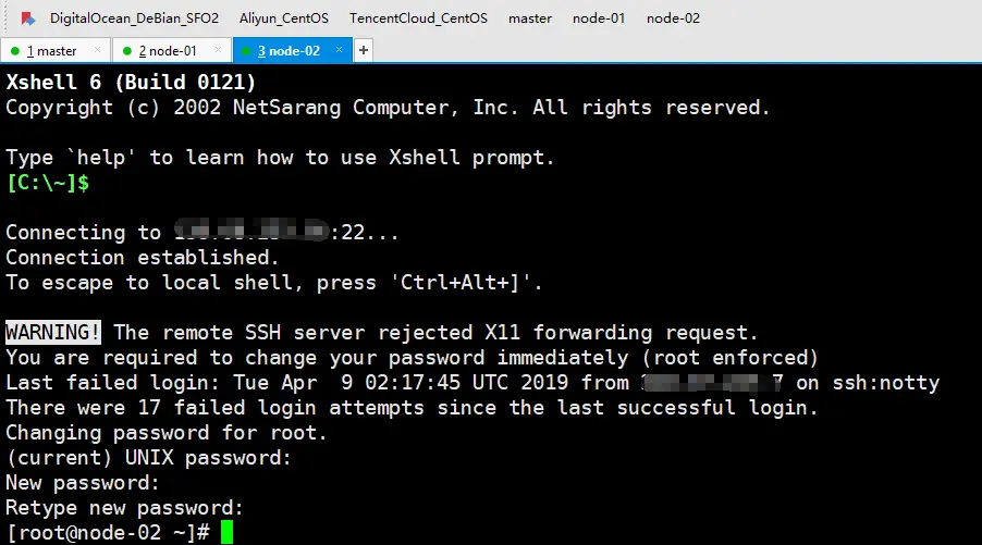 此处会包含服务器ip、用户名密码,请使用XShell等工具进行连接,第一次连接会要求修改密码,后面就可以正常使用了