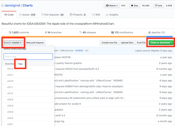 由于我们的项目未使用pods,所以下面我介绍一下手动引入时发现的坑。下面我以Charts 3.0.1版本为例,别问我为什么?因为我们的项目使用的是Swift 3.0,别问我为什么不升级?大佬们,我不敢啊!小弟做不到啊!