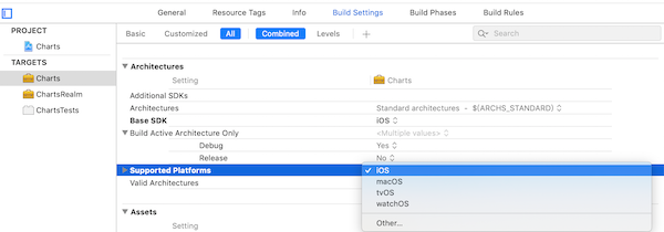 2.Build Setting->TARGET->Architectures->Supported Plateforms,将tvOS修改为iOS
