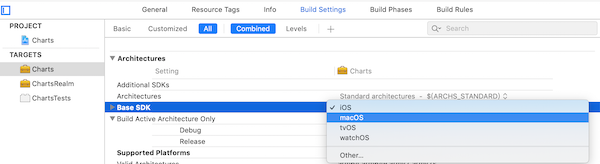 1.Build Setting->TARGET->Architectures->Base SDK,将macOS修改为iOS
