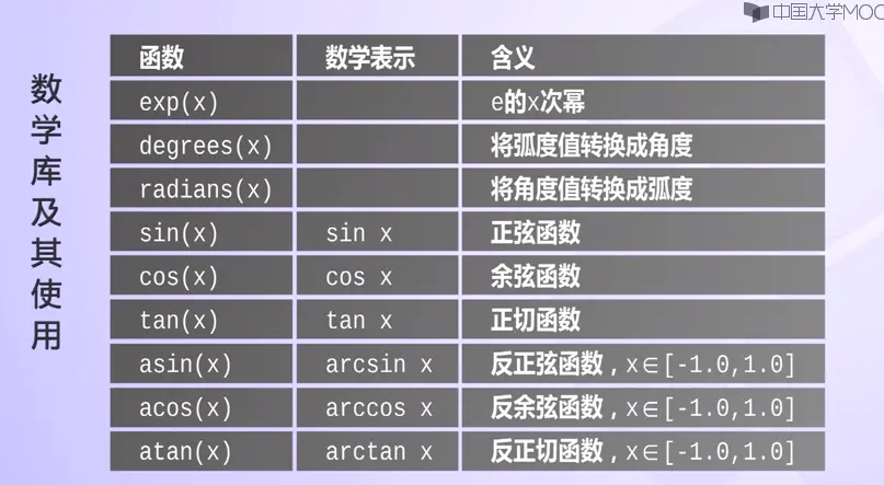 - 整数,浮点数,复数三种数据类型可以进行函数转换分别为函数:int()、float()、complex()