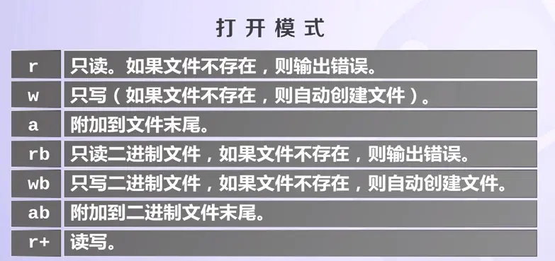 <name>,<mode>) eg:open("a.txt","r") - 打开模式: