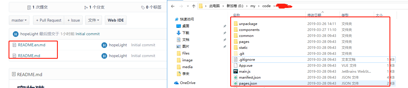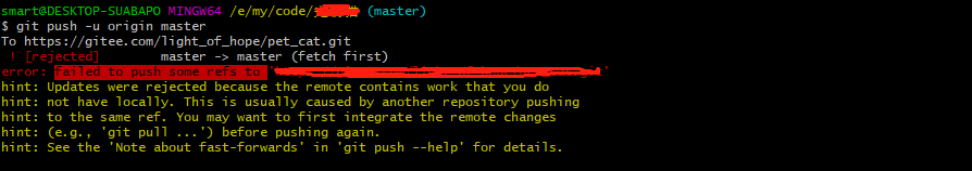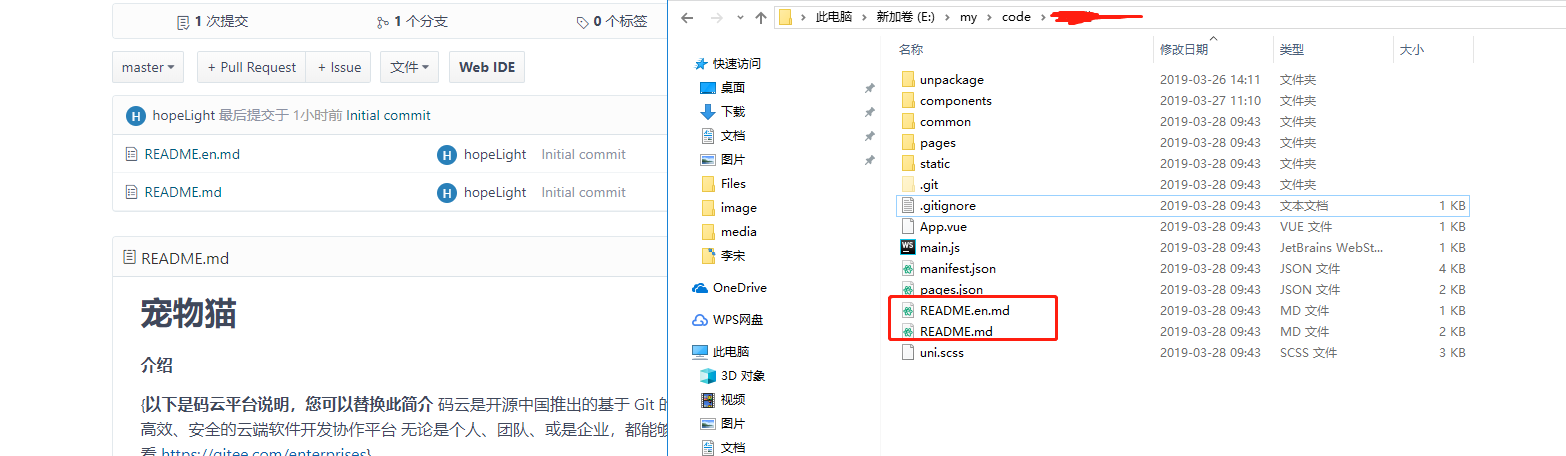 原因是:本地项目中缺乏线上的 README.md 文件, 如下图: