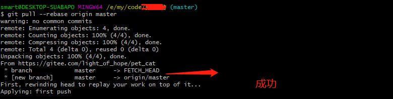 接着执行 git push -u origin master 就可以将本地项目提交到线上了