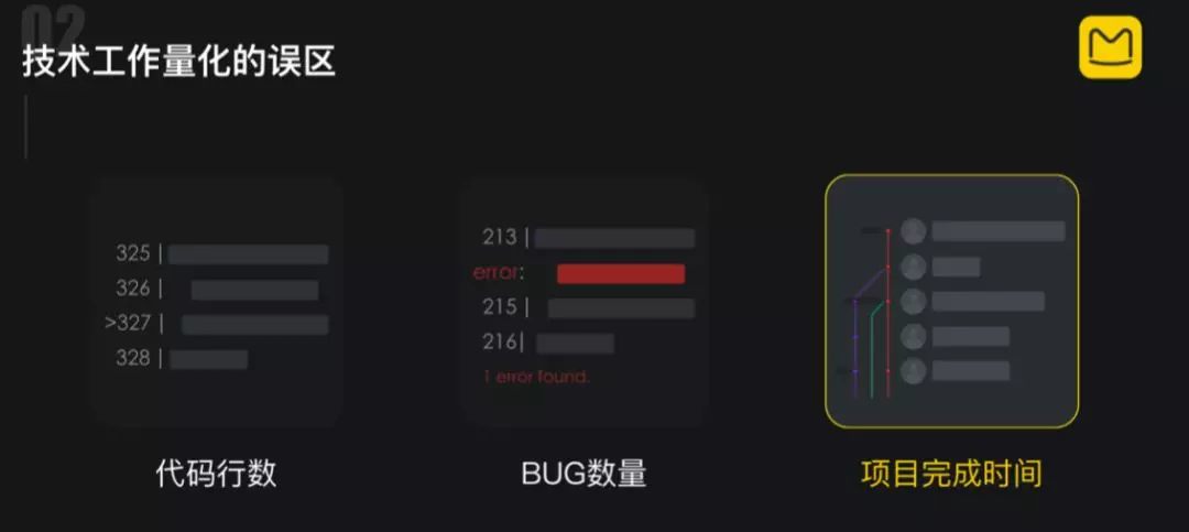 大部分朋友都知道在技术工作量化上第一个误区是代码行数。当前我们常常对工程师提出要求——把代码写得精简易读,但有些“经验丰富”的工程师仍然很容易地在代码里加入很多没用的东西,或者是用工具实现代码行数的增加,以此来体现“彰显”工作量。