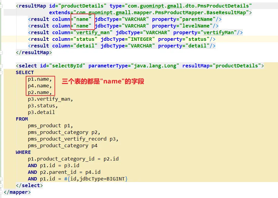 - 然后这样查出来的都是以第一个name查出的值封装的