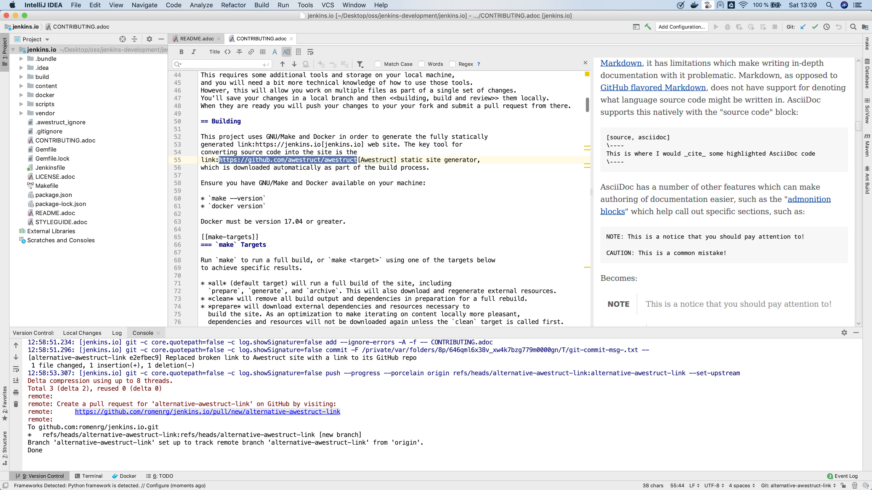 点击链接跳转到 jenkins.io 代码仓库,这个仓库包含了网站的源代码其中也包括这篇文章。 事实上,我首先查看的是贡献指南,以便了解如何为网站做出贡献的相关信息。