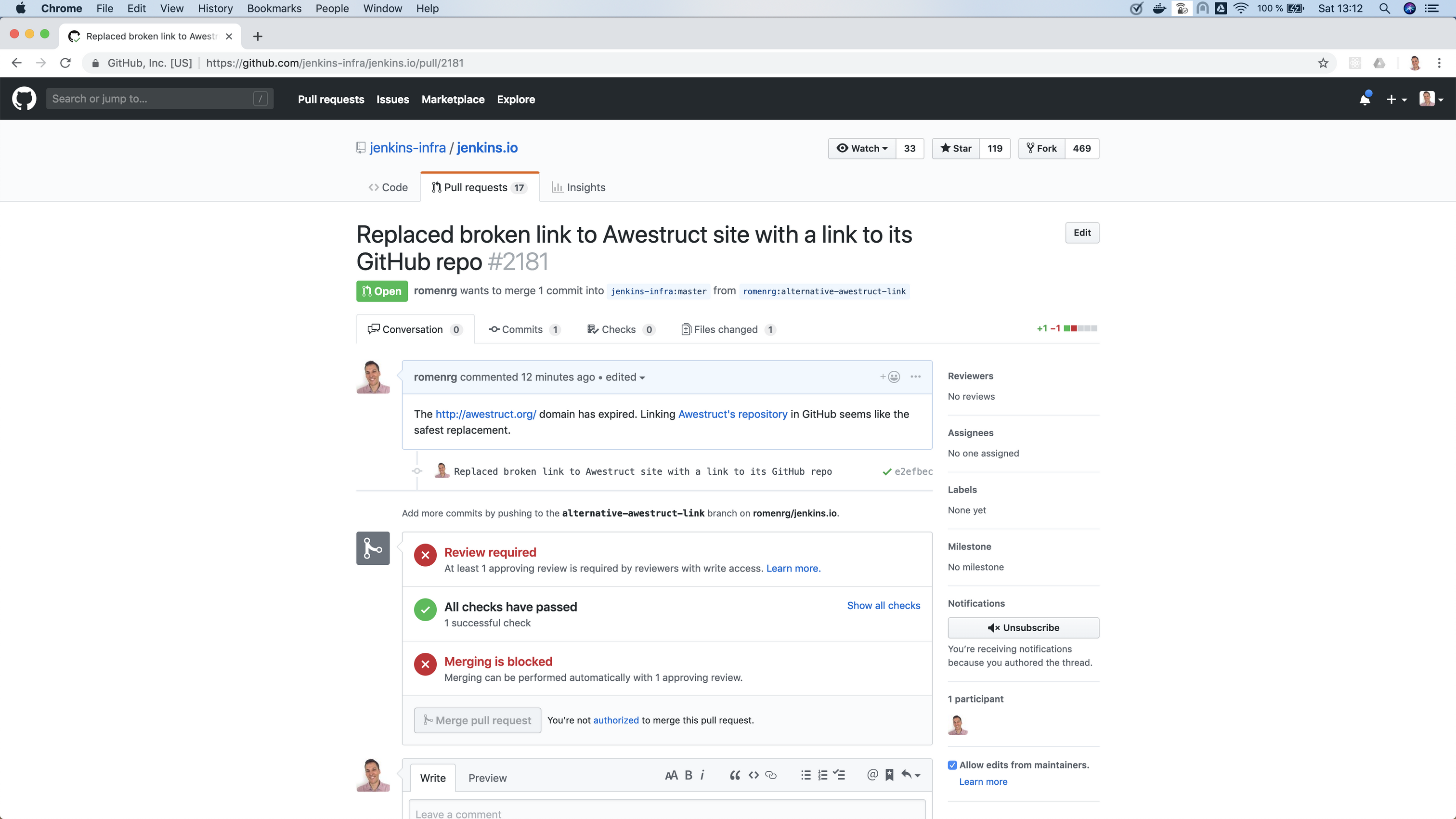 通过阅读贡献指南,我了解了 Awestruct 静态站点生成器,它是用于将代码仓库中的 AsciiDoc 源文件转换为网页的工具。 然而,当我点击链接想查看更多信息时,我发现这个链接失效了——域名已经过期。