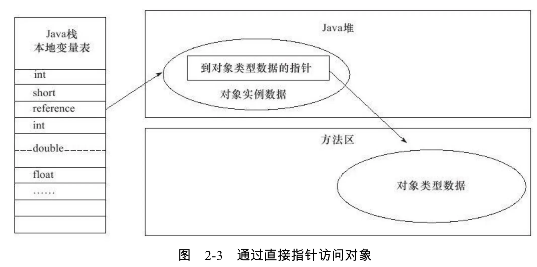 局部变量表,就如下图所示(这个是对象的访问定位的其中一种方法,指针直接访问对象,Java采用的是这种)。如果要看Java对象访问的话,可以参考我的这篇文章,Java对象访问。