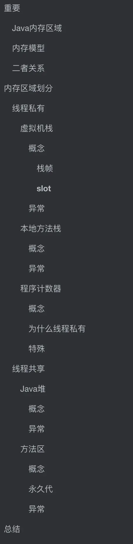 我们刚刚说到栈帧的数据结构,他存储的重要信息,其中有一个是局部变量表,而这个局部变量表也是由一个个小的数据结构组成,他就叫局部变量空间(slot)。你也可以把它当成是一个空间大小的度量单位,就像字节一样,因为存储的数据的大小也是用这个衡量的。