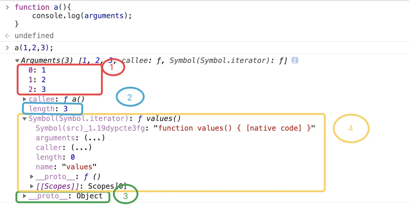 特点说明:对于类数组的特点前三个我就不做说明了哈,主要就是最后一个,能被迭代需要具备什么呢?由图我们可以看出有一个