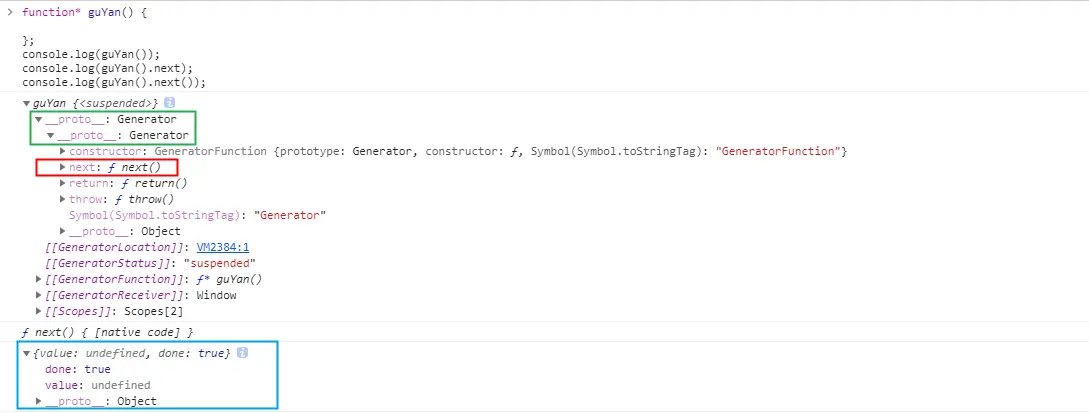 console.loh(guYan().next()) // { value: undefined, done: true }
