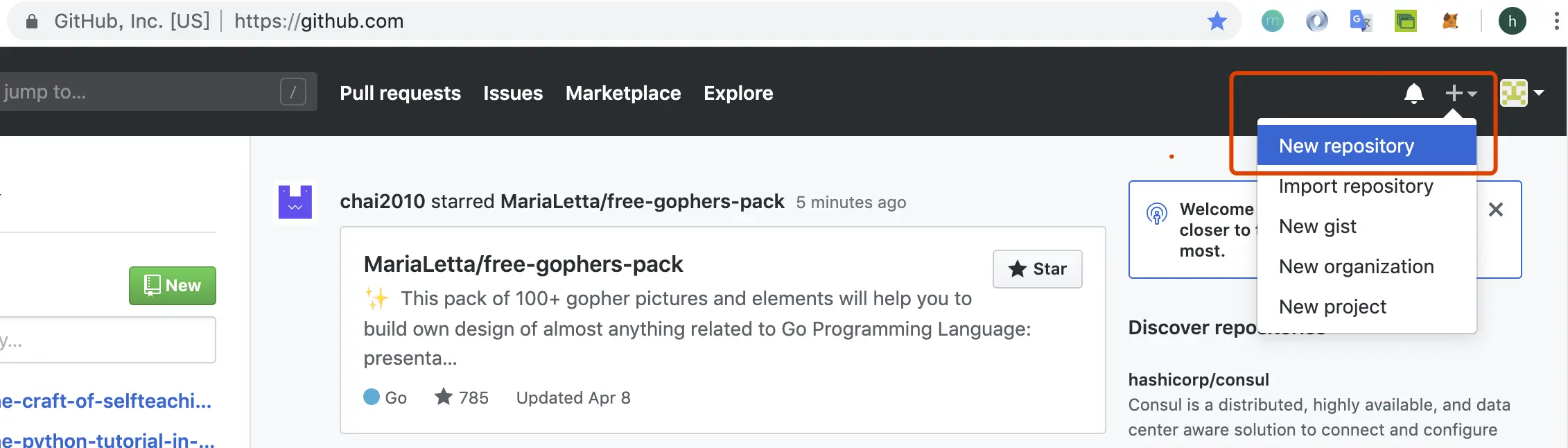 可以通过创建新的仓库来进行代码仓库的创建,方便我们后续使用该仓库来进行代码管理。如下图: 然后填写仓库名称,描述,是否是私有等选项内容,最后点击创建。