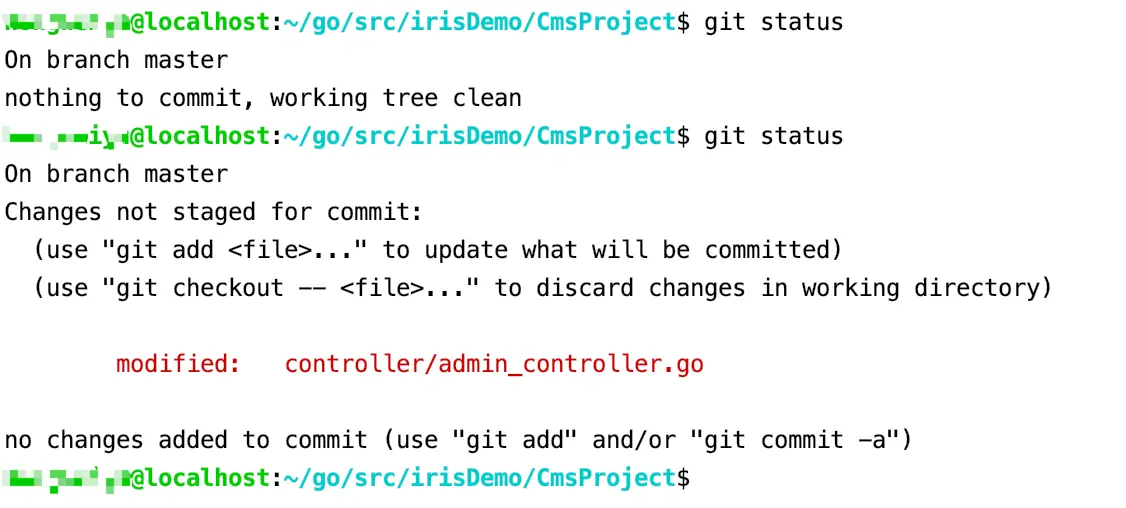 git status红色表示自上次提交以后,有过内容修改的文件。该命令在我们开发过程中使用非常频繁。