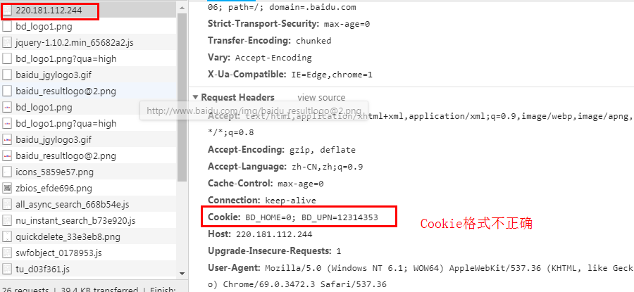 okttp3访问IP地址Cookie丢失的现象,这里使用百度的IP地址:http://220.181.112.244:80/,
