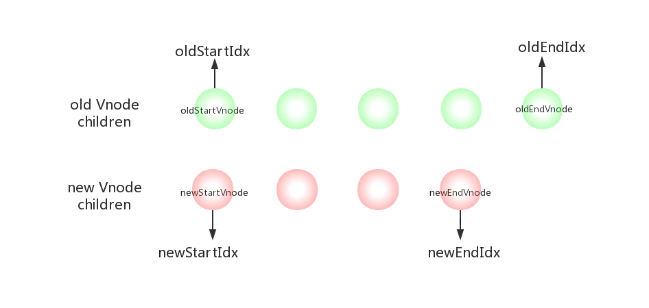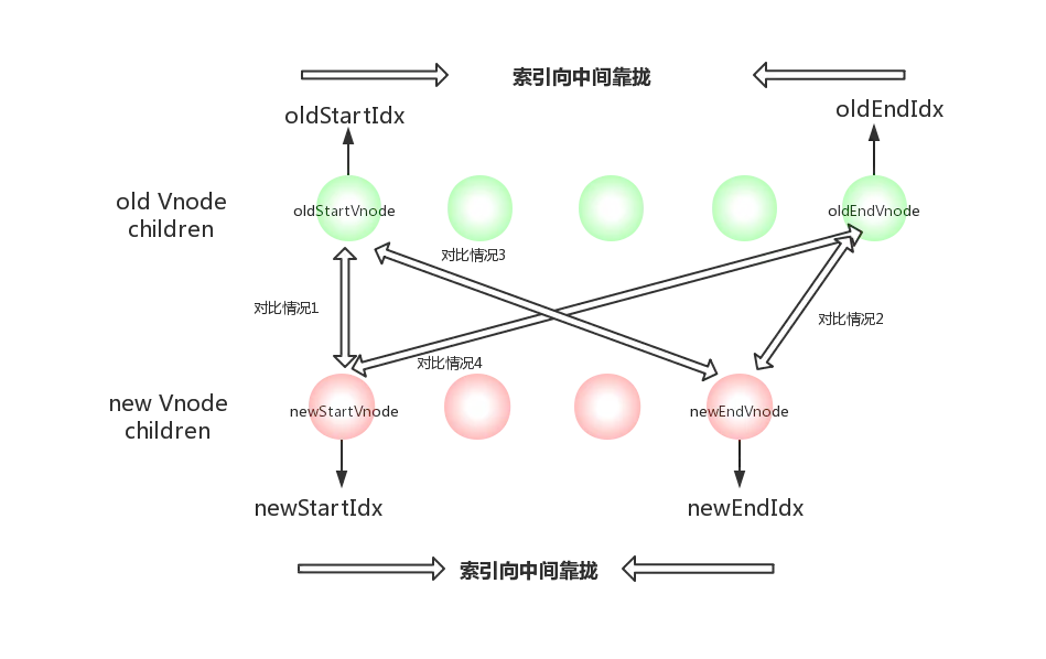 接下来就是 oldStartVnode ,newStartVnode,oldEndVnode,newEndVnode 两两对比的四种情况了