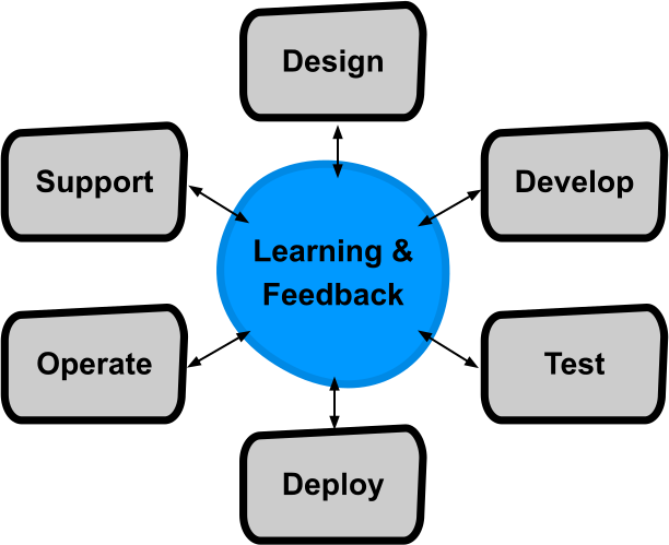 The purpose of the software life cycle is to optimize “time to value”; to effectively convert ideas into working products and services for customers. Developing and running a software service involves a full set of responsibilities: