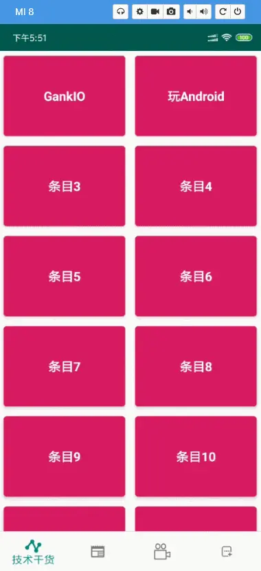 app:cardBackgroundColor设置背景色。 - 如果需要添加水波纹效果,那么只能添加前景了,那么前景可以使用主题的,也可以使用自定义的,本质就是个