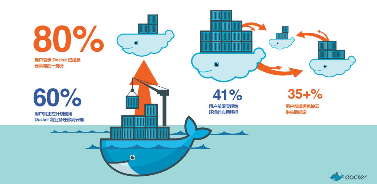 60% 的用户则正在计划使用 Docker 将业务迁移到云端。