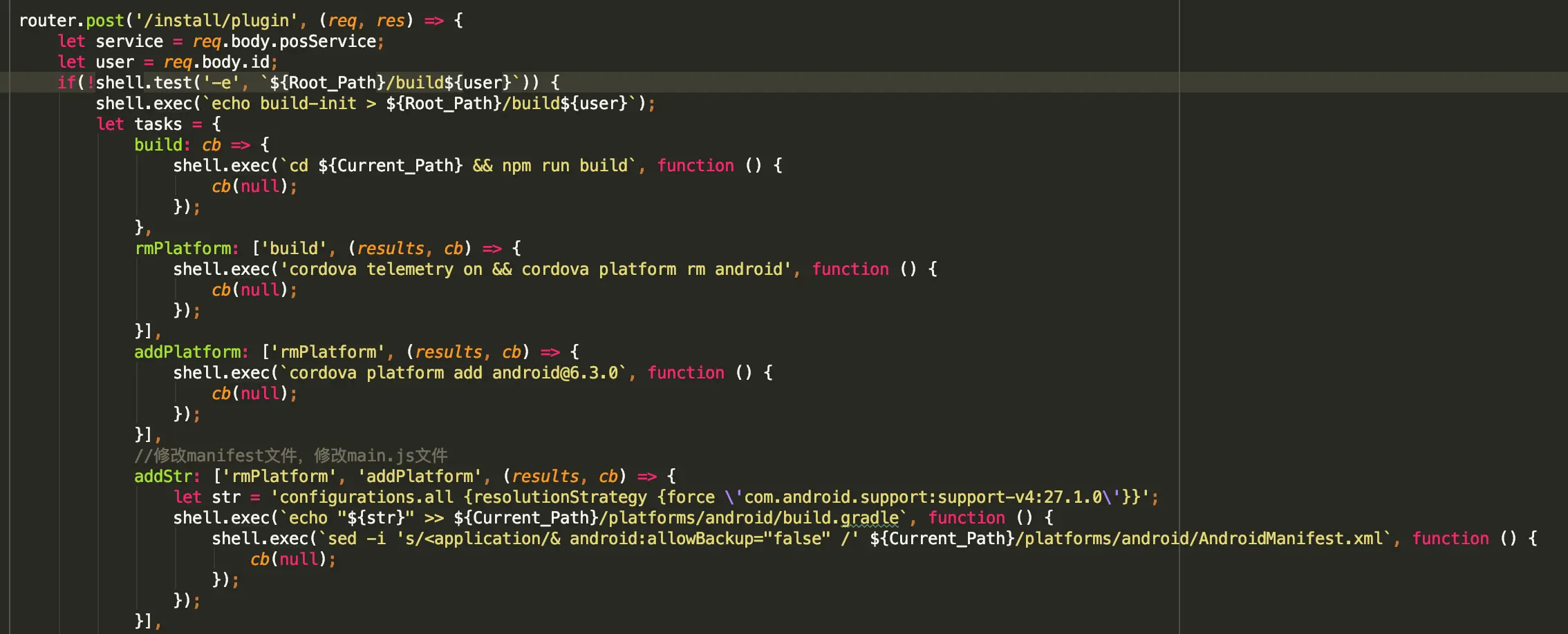 - 轮询接口的设计思想,在调取安装插件接口的最开始,创建一个此用户的的文件,并在文件中写入“build-init”标志,当次接口执行完,会在文件中覆盖写入“build-suucess”标志,然后轮询接口只要轮询到此文件写入了“build-success”标志就返回成功