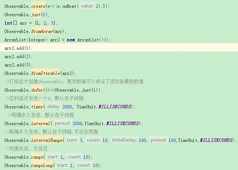 - Observeable流的创建方法,Flowable也同样拥有(Create、just ...)。