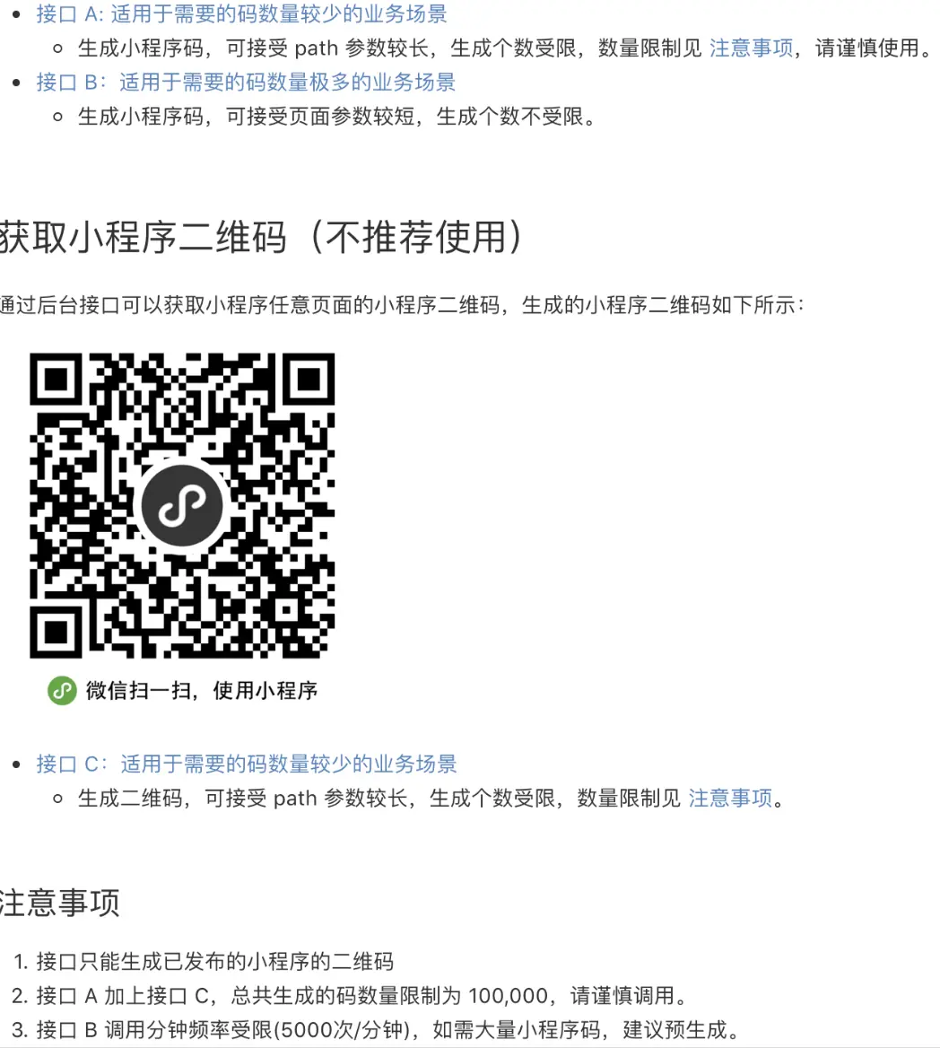 上述三种生成接口,大家根据情况按需使用,因为我的项目里,需要经常生成不同页面对应的小程序码,B类接口比较符合我的要求,这里就重点描述下B类接口的使用和自测