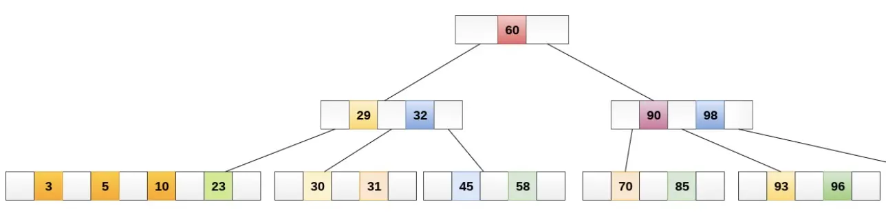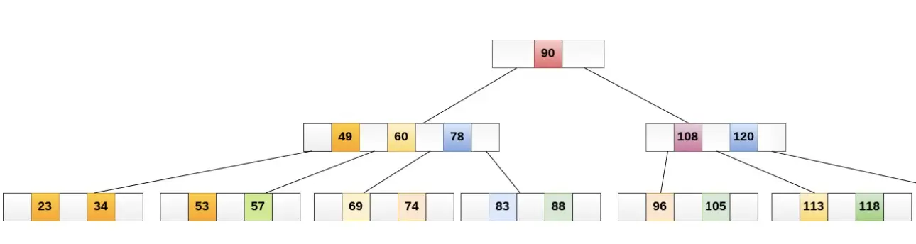 B树 在插入和删除时,都有可能导致破坏 B树 的规则,因此当破坏规则时,需要对树进行重新平衡,已到达查找数据、顺序访问、插入数据及删除时的时间复杂度在 O(log n)。
