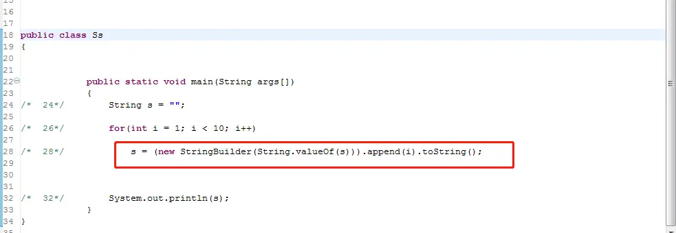 这里就可以更明显地看出其实每次循环的时候都会去new一个StringBuilder对象,然后再toString,最后赋值给s。