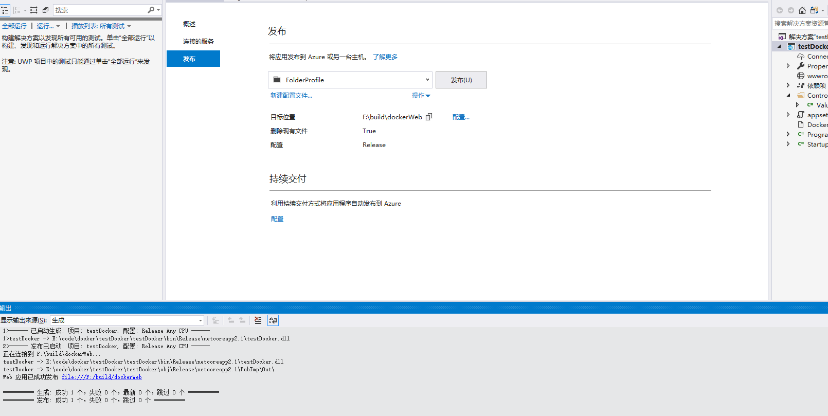 ENTRYPOINT ["dotnet", "testDocker.dll"]3.3 发布
