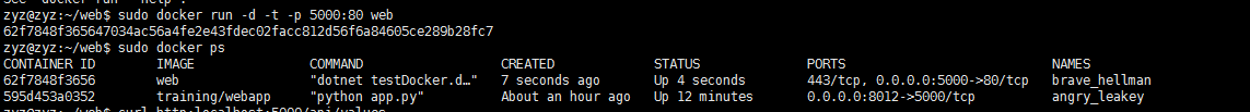 sudo docker run -d -t -p 5000:80 web #运行镜像