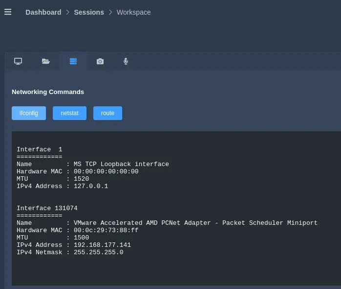 第三个是查看受害者的网络信息,可以查看ip信息,端口信息,路由信息。