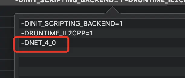 d.Other C Flags添加 -DINIT_SCRIPTING_BACKEND=1 和 -DRUNTIME_IL2CPP=1