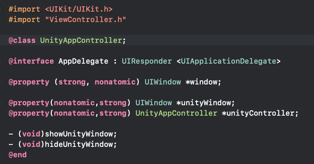 步骤六:把Classes文件夹下的UnityAppController.h进行如图修改(报错是因为AppDelegate中还未做修改)