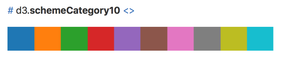 跟之前一样,创建g组合标签后,把piedata数据绑定至g标签,这里要用到D3的内置颜色,d3.schemeCategory10选了10种颜色,方便我们随时使用,为饼图的不同区域填色,不必为想不出好的颜色搭配而烦恼,当然也可以自定义颜色