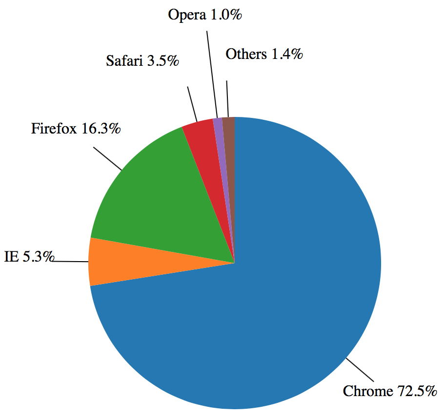 表格数据是来自w3schools的2016年9月的浏览器使用率